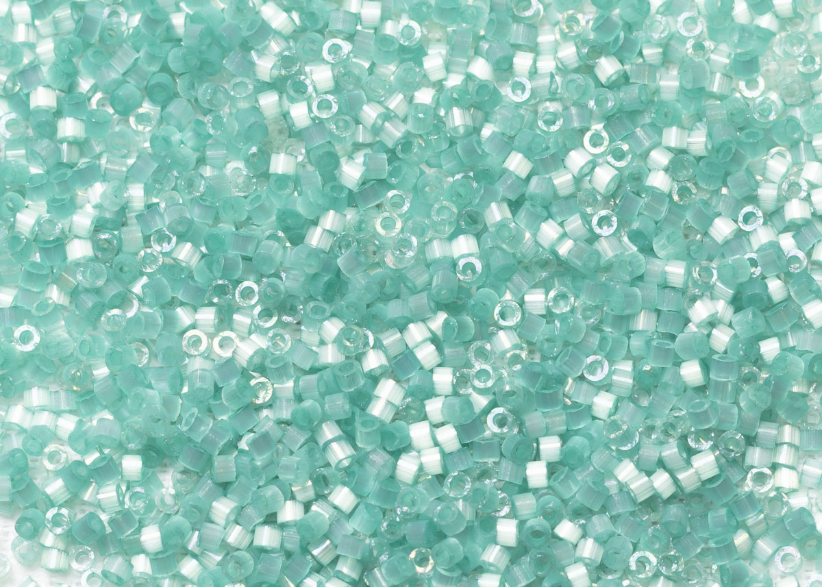Бисер Япония MIYUKI Delica цилиндрический 11/0 5г DB-1782 белый бирюзовый радужный с цветной линией