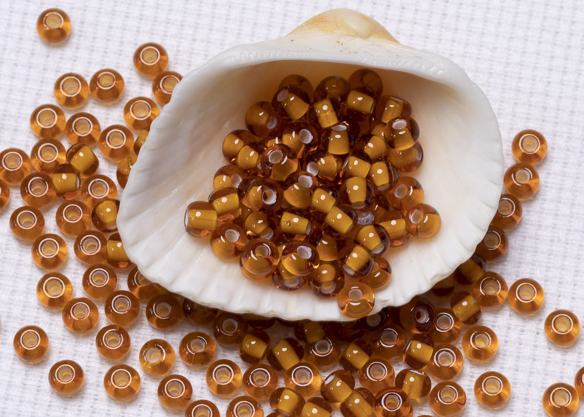 Бисер Чехия круглый 10/0 50 г 15096 темный янтарный, белая линия внутри