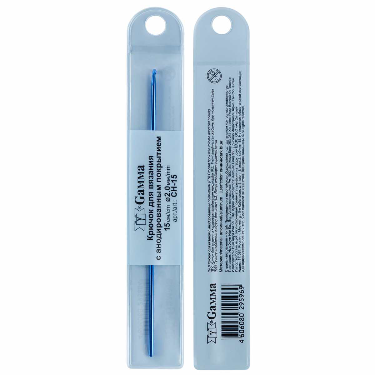 Для вязания " Gamma" CH- 15 крючок цв. алюминий d 2. 0 мм 15 см в чехле синий