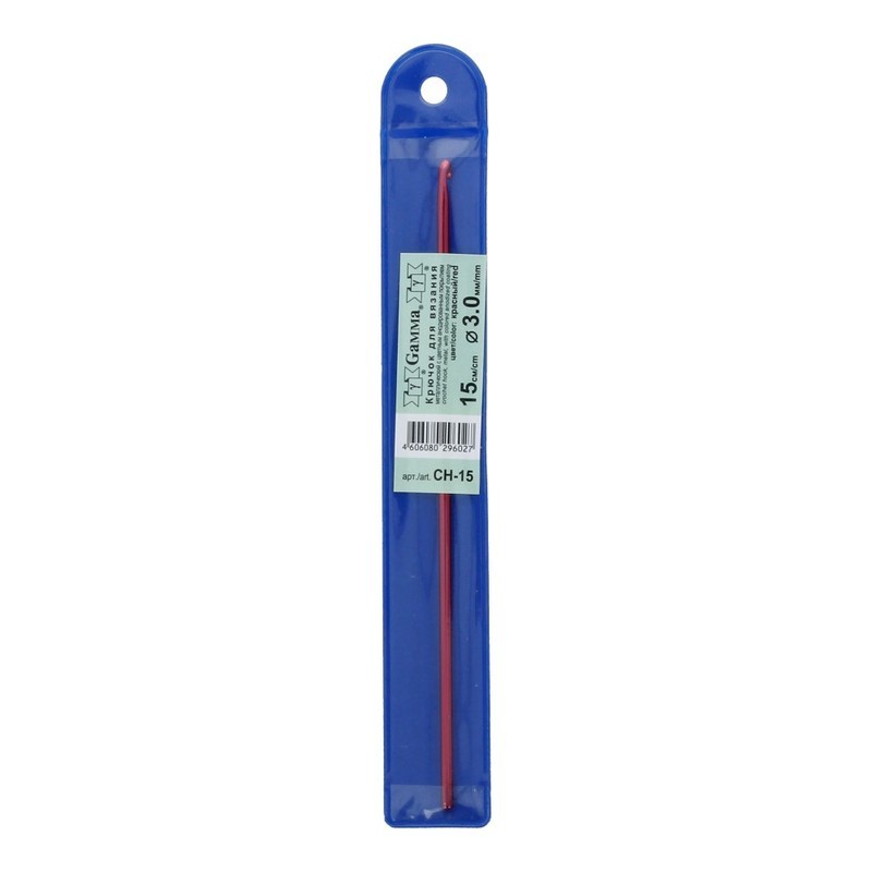 Для вязания " Gamma" CH- 15 крючок цв. алюминий d 3. 0 мм 15 см в чехле красный