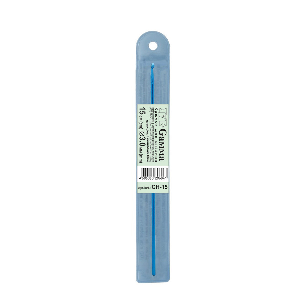 Для вязания " Gamma" CH- 15 крючок цв. алюминий d 3. 0 мм 15 см в чехле синий