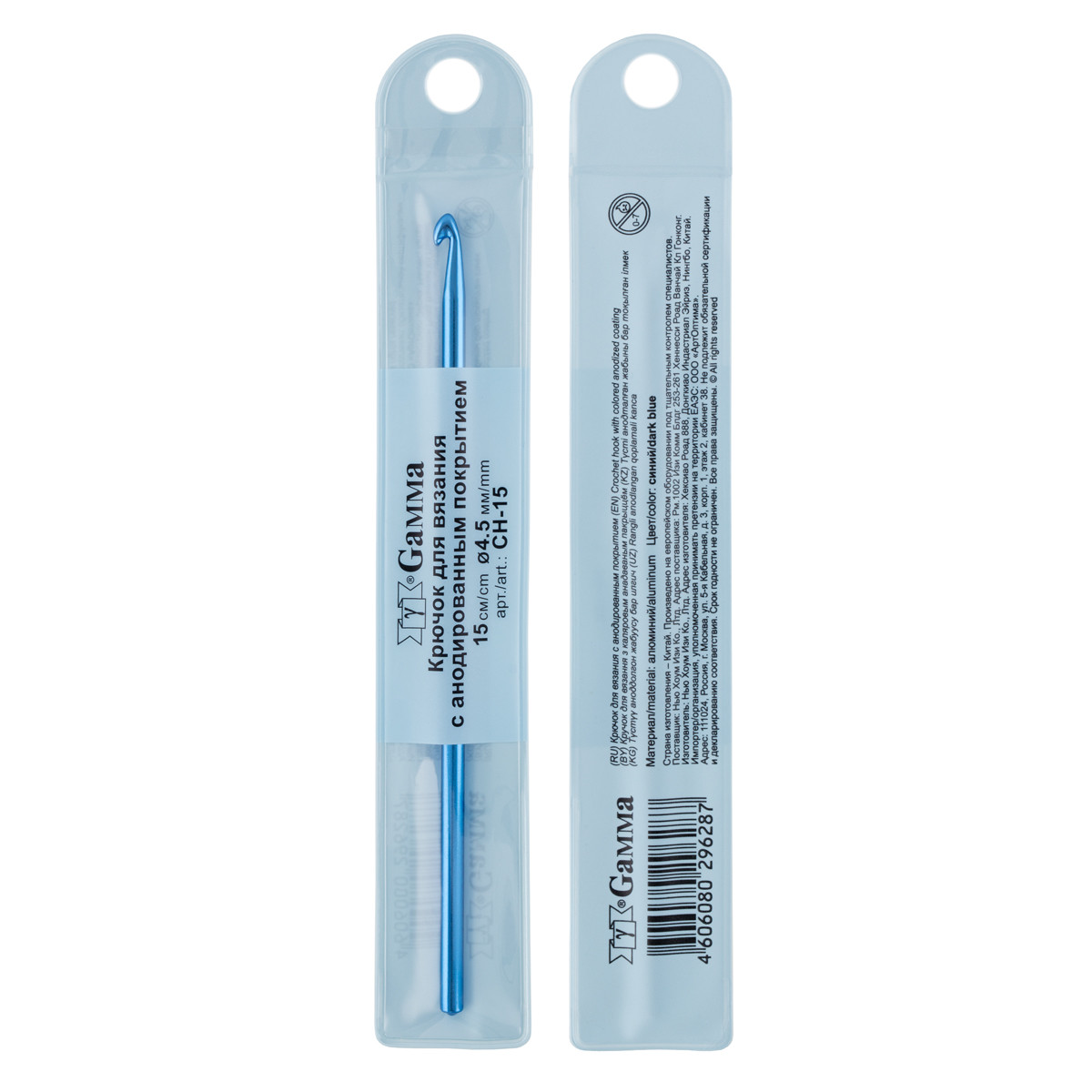 Для вязания " Gamma" CH- 15 крючок цв. алюминий d 4. 5 мм 15 см в чехле синий