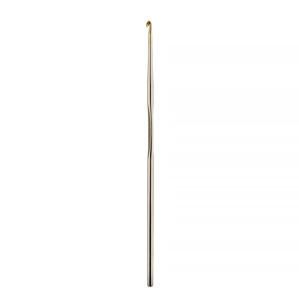 Серия тонких крючков с позолоченной головкой. Сделаны из прочной стали. Предназначенны для филигранного вязания кружева тонкой нитью. Позолоченная головка обеспечивает хорошее скольжение нити, а также позволяет отчетливо видеть петлю на крючке, что облегчает вязание тонкого полотна. Съемный пластиковый колпачок защищает головку крючка от повреждений и царапин.