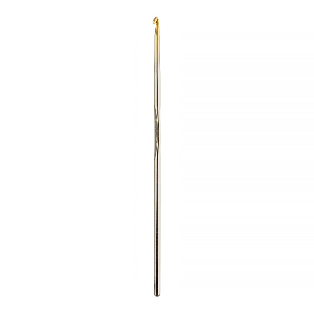 Серия тонких крючков с позолоченной головкой. Сделаны из прочной стали. Предназначенны для филигранного вязания кружева тонкой нитью. Позолоченная головка обеспечивает хорошее скольжение нити, а также позволяет отчетливо видеть петлю на крючке, что облегчает вязание тонкого полотна. Съемный пластиковый колпачок защищает головку крючка от повреждений и царапин.