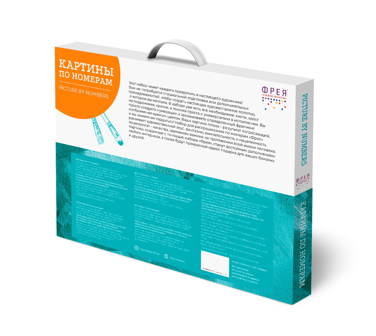 Картины по номерам - техника рисования, любимая многими. Картины от ТМ Фрея отличаются от наборов других производителей улучшенной схемой без крохотных неразличимых деталей, точной нумерацией и тщательным подходом к подбору цвета. В набор входит: холст на подрамнике, акриловые краски в пронумерованных баночках, три кисти разного размера, инструкция с контрольным листом и эталоном готовой картины. Сразу после завершения работы картиной можно украсить интерьер, используя специальные крепления, входящие в набор. Ассортимент Фрея включает в себя сюжеты на любой вкус, от картин всемирно известных художников до скетчей молодых дарований, от реалистичных фотографий до постеров с героями мультфильмов. Сообщить о неточности в описании