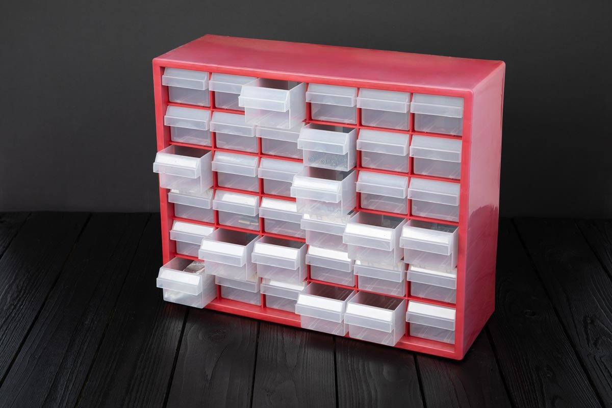 " Gamma" Органайзер пластиковый с выдвижными ячейками 36 шт. ОМ- 036 пластик 39. 5 x 13. 5 x 32 см красный