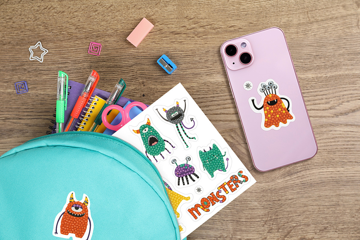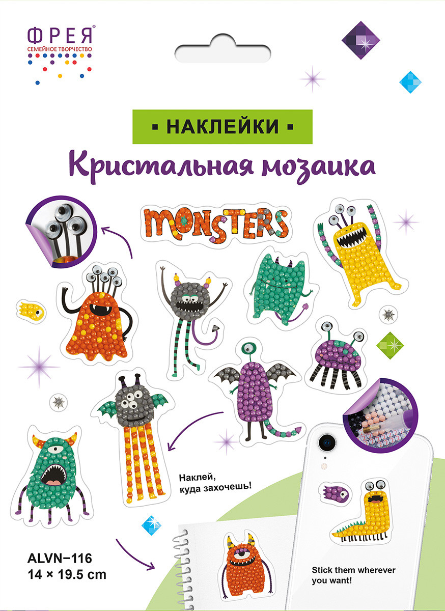 Кристальная ( алмазная) мозаика " ФРЕЯ" ALVN- 116 наклейки " Монстрики" 19. 5 х 14 см