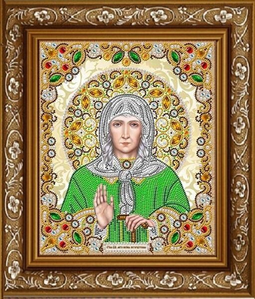 Рисунок на ткани для вышивки бисером ЖК-4016 Святая Ксения в кристаллах и жемчуге 20х24см