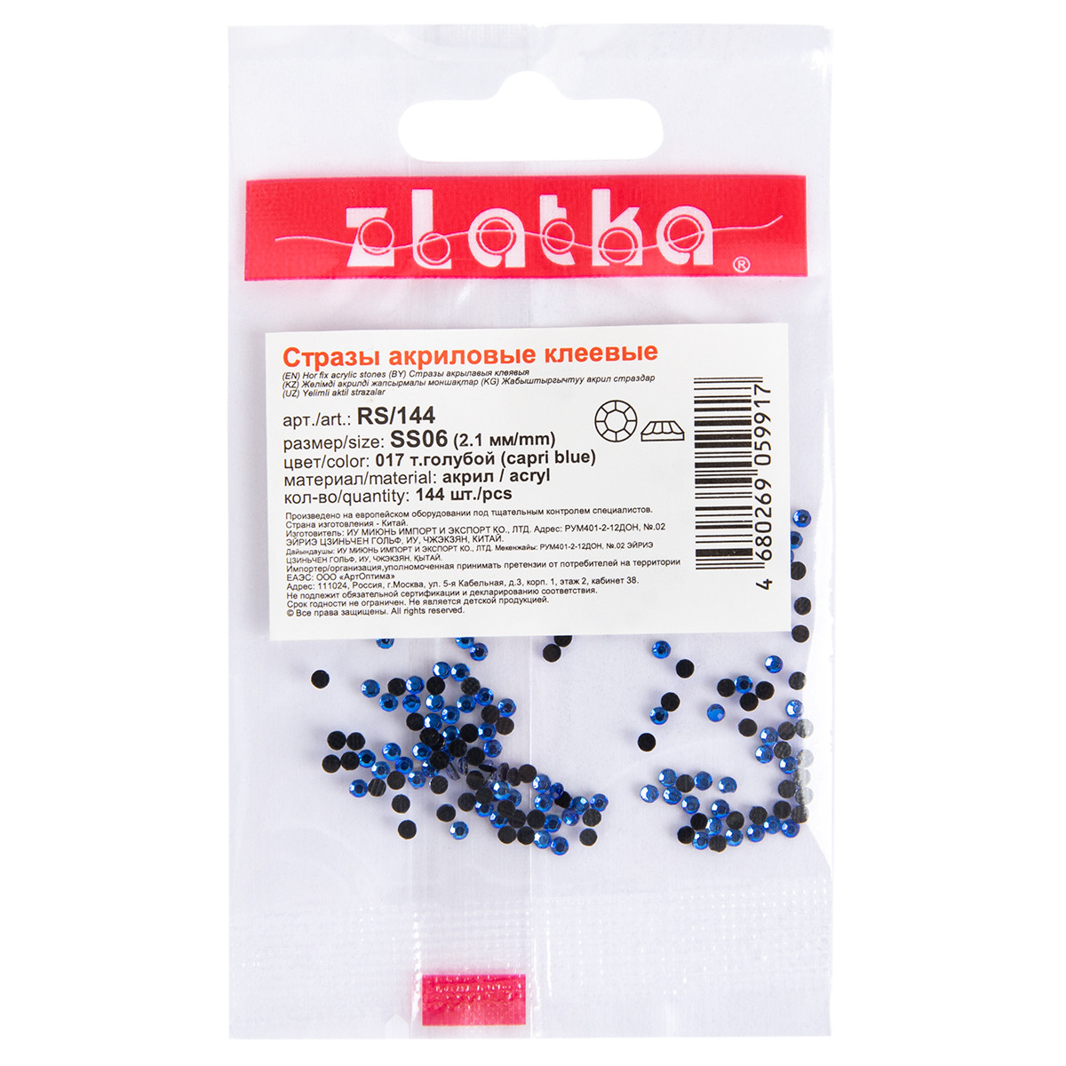 Страз клеевой " Zlatka" RS/ 144 SS06 1. 9 - 2. 1 мм акрил 144 шт в пакете с еврослотом 001 белый ( crystal)