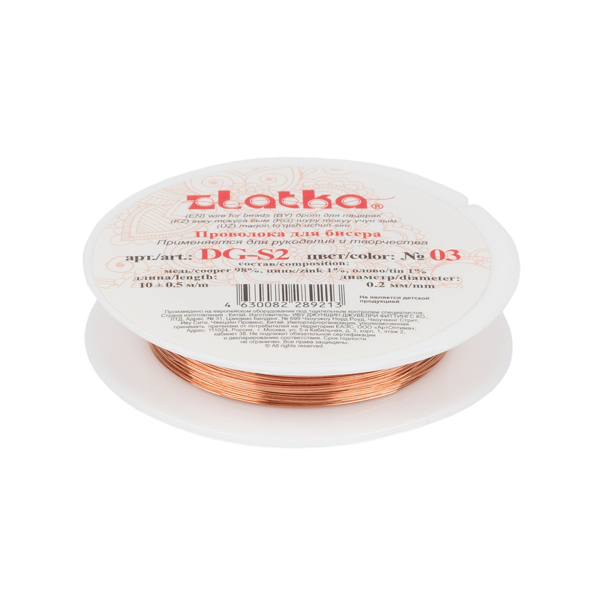 " Zlatka" / " Gamma" Проволока для бисера DG- S2 d 0. 2 мм 10 м №03 под св. медь