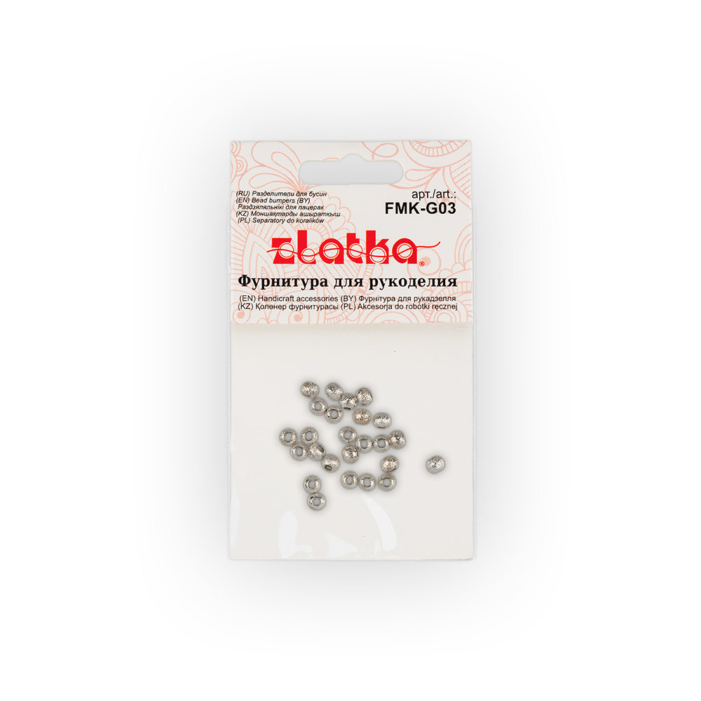 Разделители для бусин " Zlatka" FMK- G03 Рондели - небольшие декоративные бусины, используются для разделения бусин в украшении или в качестве самостоятельного декоративного элемента. Использование качественной фурнитуры играет очень важную роль при изготовлении бижутерии. От правильного выбора подвески, коннектора, замка или любой другой связующей части зависит целостность готового изделия. Размер: 3 мм. Внутренний диаметр: 1 ммСообщить о неточности в описании