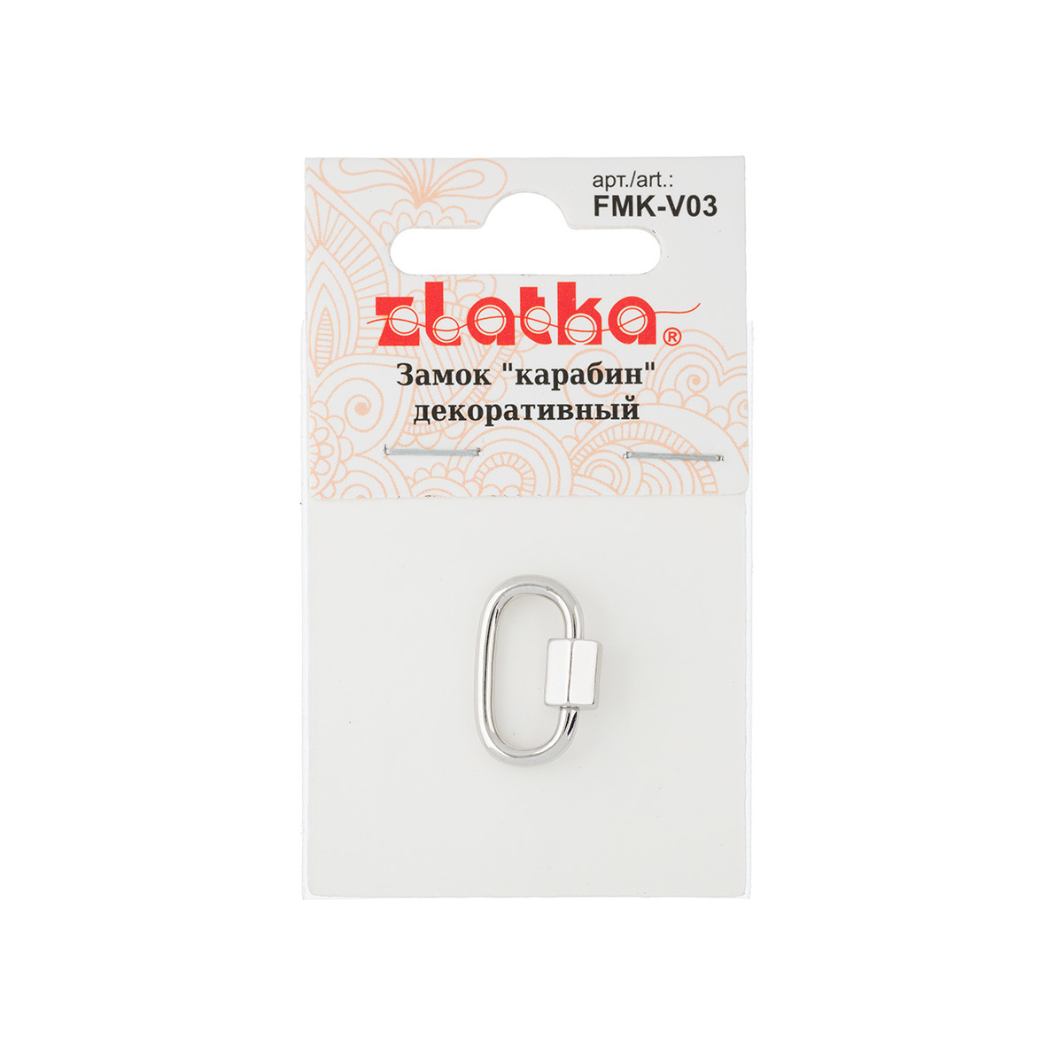 " Zlatka" Замок " карабин" декоративный " овал" FMK- V03 12 х 18 мм 1 шт №01 под серебро